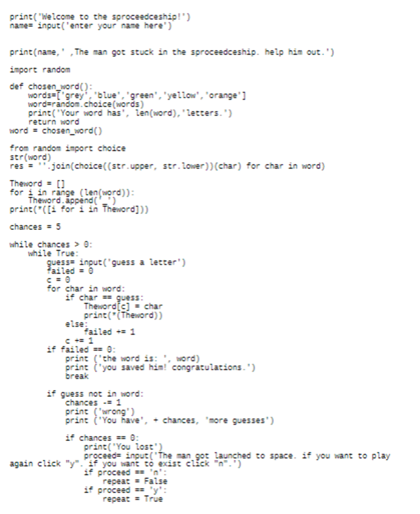 The first authentic task I had was to make a program where it can substitute the game ‘Hangman’ with the use of Python. The learning goals I had for this period was improving my Python knowledge and having a better study plan. The usage of python was very important in the orienting phase which is why I found it very important to get more knowledgeable.